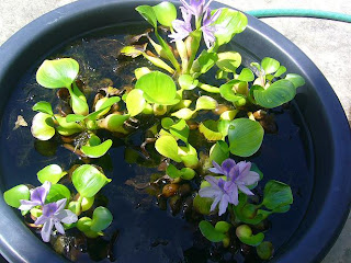 Among the pots of potted plants that we nurture, there's only two species of aquatic plants in our collection. Both plants were given by friends a few years back and both species survive till today. The common water hycinth locally known as keladi bunting (scientifically known as Eichhornia Crassipes) with its beautiful light lavender blooms have always been our favourite. It can be an invasive species if let grown unattended/uncontrolled especially in man-made ponds, water catchment areas like reservoirs. It is one of the most hardy aquatic plants it can form dense colonies that block sunlight to the water, clog water intake and crowd out other native species. The common water hycinth reproduces primarily by runners or stolons.